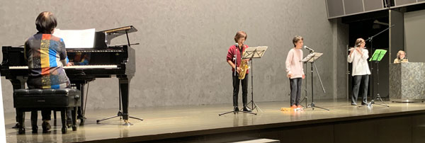 グランドピアノ、フルート、サックス、ボーカルの4人の生演奏は素晴らしく、Sさんの軽妙な司会で、『オブラディオブラダ』で始まったコンサートは、『星に願いを』『川の流れのように』『いい湯だな』など、新旧取り交ぜ、民謡から懐かしい曲やみんなで口ずさめる曲など、独奏あり、全員でのコーラスありの全12曲、あっという間の1時間でした。