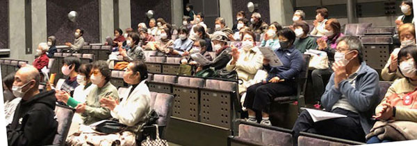 「風になりたい」「また君に恋してる」など長く愛される名曲に耳を傾け、後半は恒例の 「皆さんでご一緒に歌いましょう」のコーナー。「上を向いて歩こう」「幸せなら手をたたこう」などを鳴り物も手にしながらの合唱で大いに盛り上がりました。